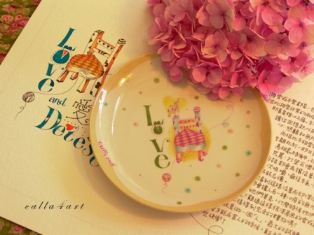 這是繼之前的單色淡彩手繪盤的另一個手繪愛情系列,
